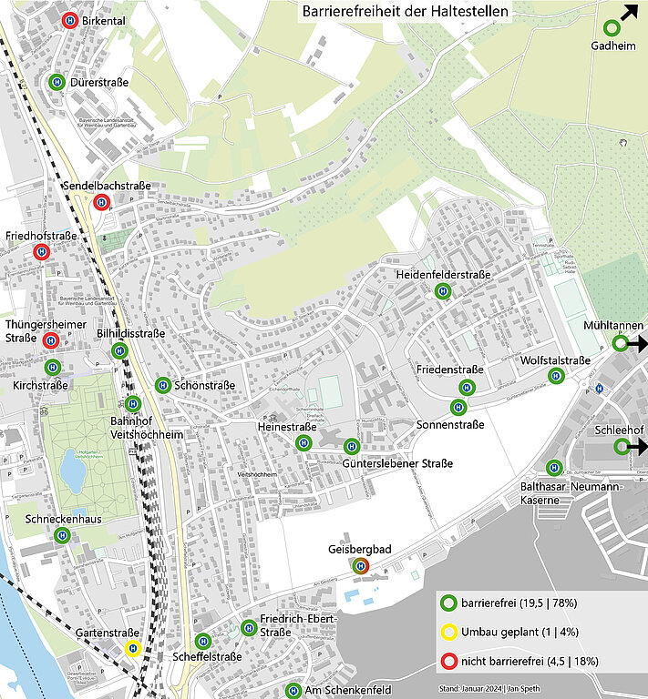 Gegenwärtig sind 78% aller Veitshöchheimer Haltestellen barrierefrei ausgebaut (Stand: Januar 2024). Diese Haltestellen zeichnen sich durch folgende Verbesserungen aus: