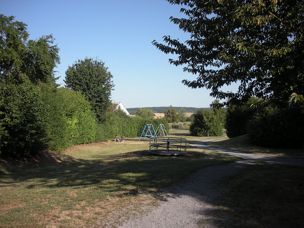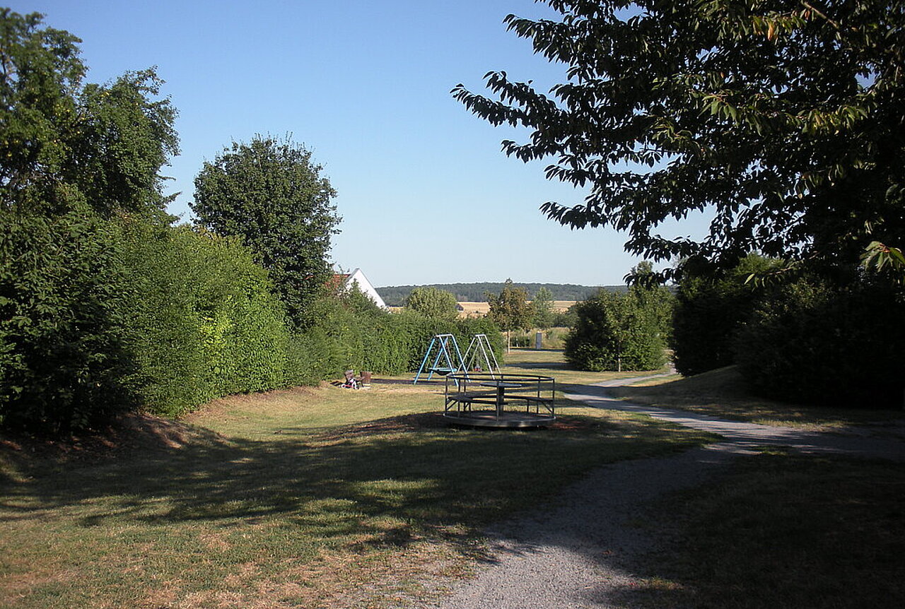 - Spielgeräte: Doppelschaukel, Nestschaukel, Drehgeräte (Wirbel), Federwippgerät, Wippe, Karussell, Spiel- und Klettergerät mit Rutsche, Kletterwand, Sandfläche, Grünfläche
