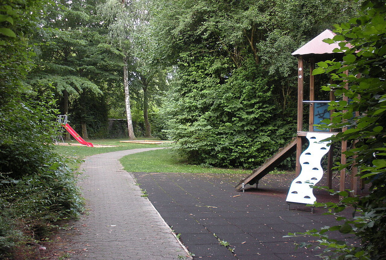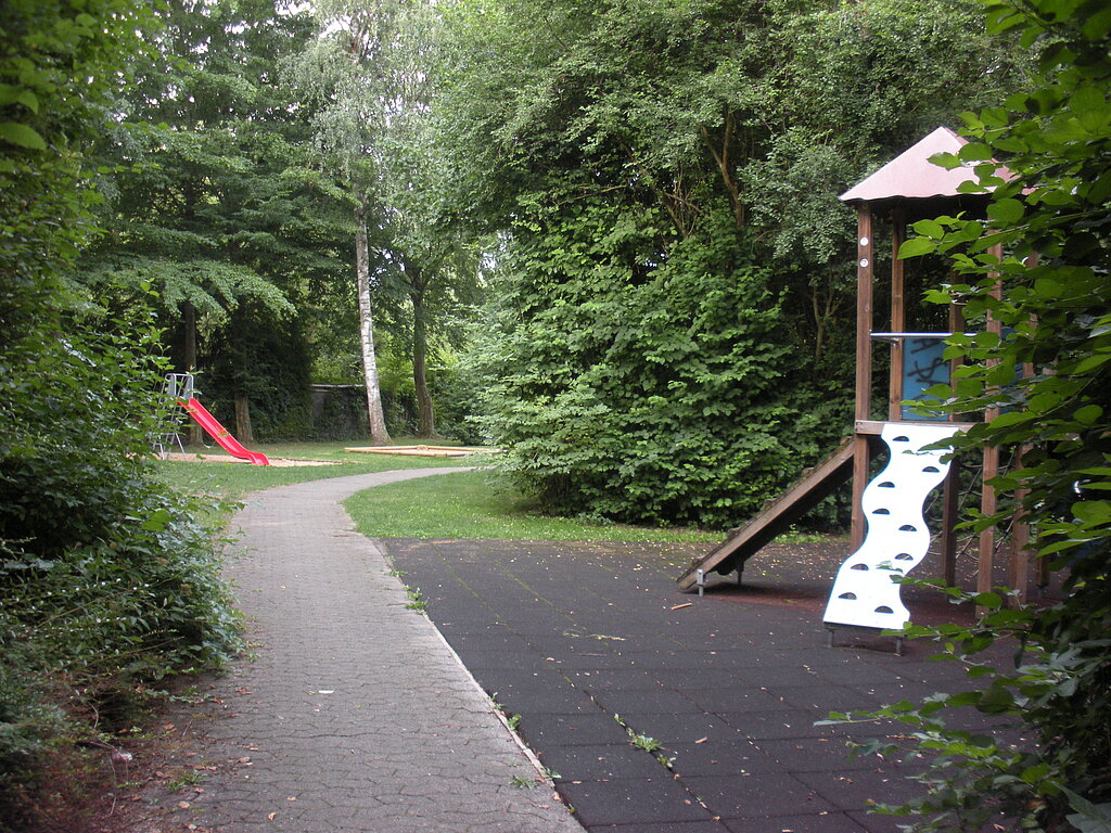 - Spielgeräte: Schaukel, Nestschaukel, Federwippgerät, Wippe, Klettergerät mit Rutsche, Reckstange, Sandfläche, Grünfläche