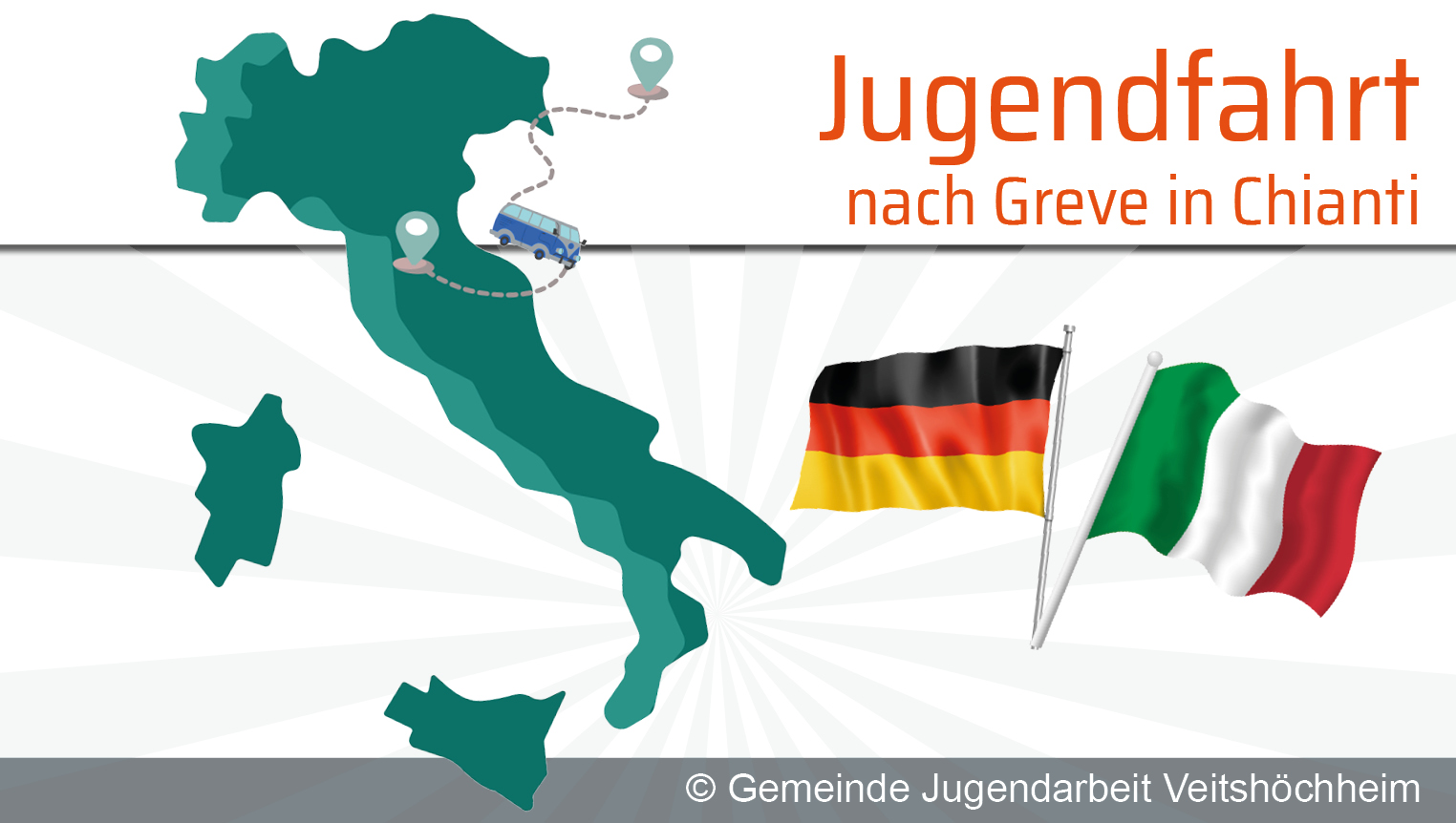 Vom 23. bis 27. April 2026 haben Jugendliche und junge Erwachsene im Alter von 16 bis 27 Jahren die besondere Gelegenheit, an einer internationalen Jugendbegegnung in unserer italienischen Partnergemeinde Greve in Chianti teilzunehmen. Die fünftägige Fahrt verbindet kulturellen Austausch, gemeinsame Erlebnisse und historische Bildung in einer der schönsten Regionen der Toskana.
